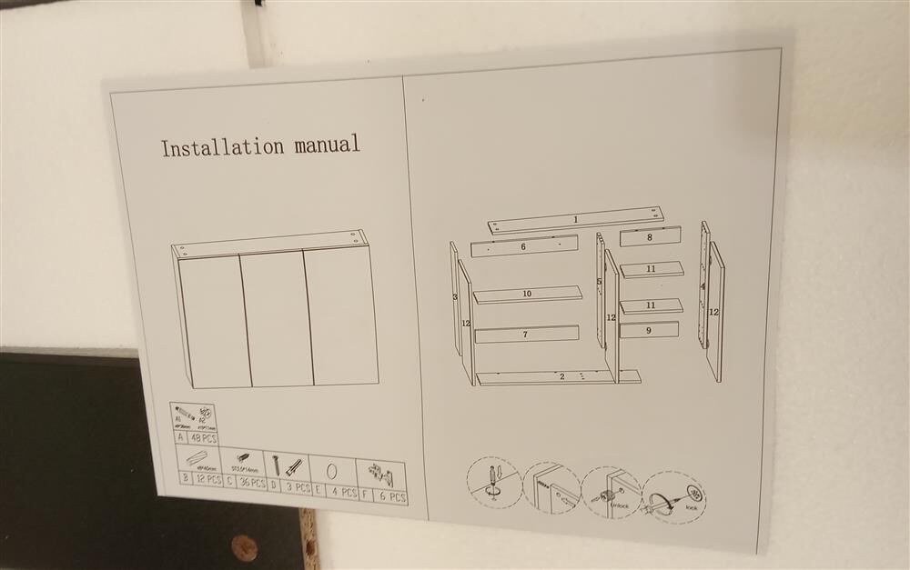 1 x Bathroom mirror cabinet 1 x User manual 1 x Pack of accessories |