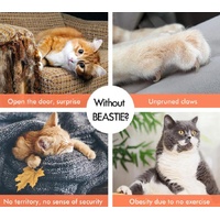 The BEASTIE cat tree creates an entertaining area for your furry friend to jump, play, rest and hide. Each quality board we use on the cat scratcher are to give your feline friends a sturdy, secure structure. Moreover, we use an ultra-plush cover on the scratcher for extra comfort.