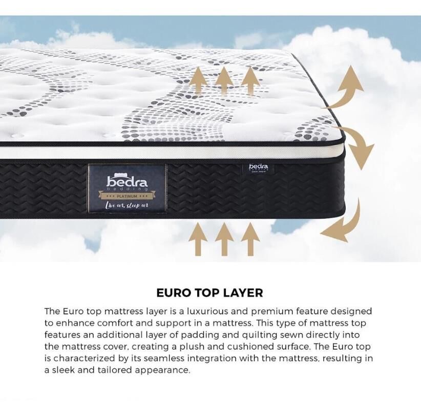 Bedra Bedding. A name synonymous with exceptional beddings that is the epitome of comfort, luxury and meticulous finishing. It’s little wonder that the Bedra Bedding Euro Top Spring Mattress is considered as one of the finest Euro Top spring mattresses that money can buy. And then some. Naturally, the Bedra Bedding Mattress meets all the required international standards and certification to gain its place in your hallowed bedroom. OEKO-TEX and CertiPUR certified, the mattress features reinforced edging, and is also hypo-allergenic and dust, mite and mould-resistant with all-round ventilation for healthy rest all the time. For a sumptuous sleep experience that lets you awake refreshed and revitalised every time, why would you settle for anything less? Elevate your sleep sanctuary with the Bedra Bedding Euro Top Spring Mattress.