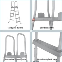 Features * Designed for above-ground swimming pools * Rust-resistant metal frame * Flared base * Removable heavy-duty plastic steps * Easy assembly
