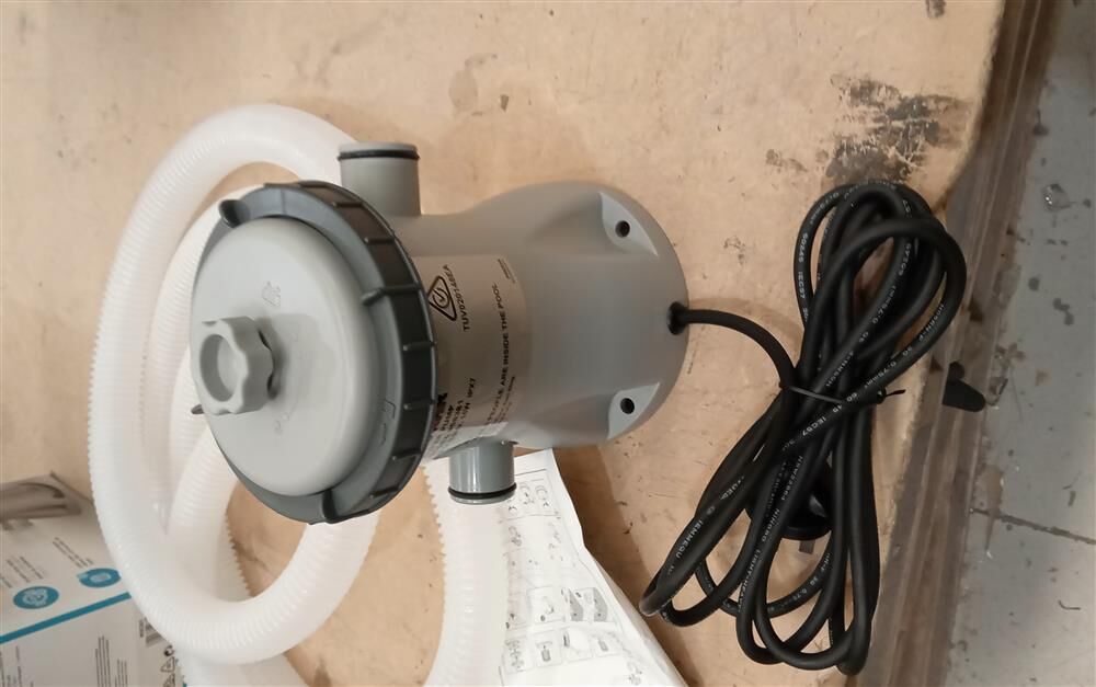 Compatible for use with Bestway above-ground swimming pools, the Bestway Filter Pump is ideal for keeping the pool clean and clear at all times. The pool water is pumped through a cartridge filter at a powerful rate of 1249 litres/hour and returned crystal clear and free of contaminants. The pool system water flow rate is 330 gal/hour. An air purge valve helps to release air to prevent any unnecessary pressure build-up. Also included is a filter cartridge, which traps and filters dirt and debris, and adaptors for pool valves.