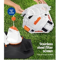 Now you can kick back and enjoy the sun while our Bestway Robotic Pool Cleaner does all the pool cleaning for you. See your automated cleaner get to work with just a toggle of the power switch. And once you turn it on and put it in the pool, you have nothing more to worry about because it has all the bases covered. The cordless design means no more tangled cords and the cleaner has full mobility around the pool floor to ensure thorough cleaning. The patented directional jet system ensures efficiency and non-slip wheels make sure that the cleaner does not trip up. There is a built-in water sensor which automatically activates the cleaner when submerged in water and deactivates when the water level is too low in order to protect the motor. As much as 4.5L of debris can be trapped inside the large base compartment so that you do not have to empty while in the middle of a cleaning cycle and the nylon filter screen is longlasting and easy to wash. The built-in rechargeable battery allows a cleaning cycle of 90 minutes for extended periods of cleaning and only takes 5 to 6 hours to fully charge. The cleaner is suitable for all above and in-ground pools with flat floors.