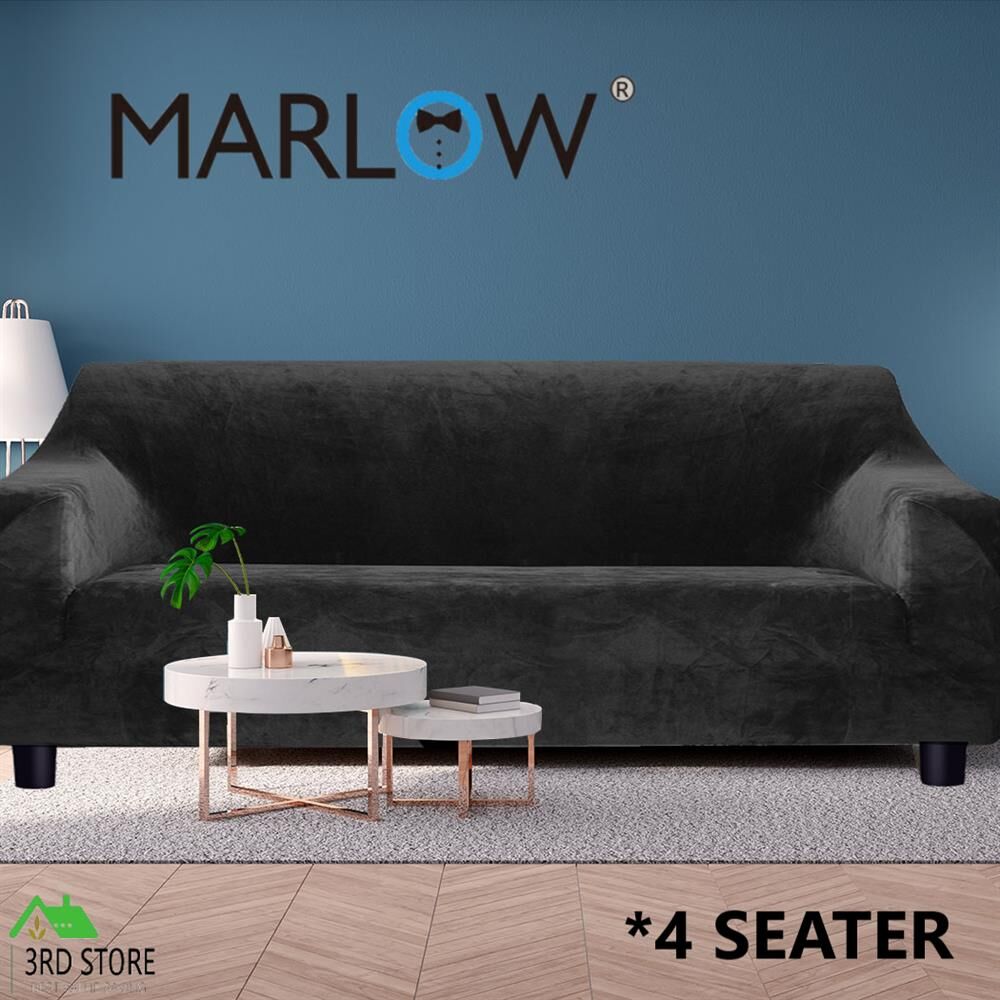 Marlow Stretch Sofa Cover Couch Lounge Slipcover Protector 4 Seater Plush Black