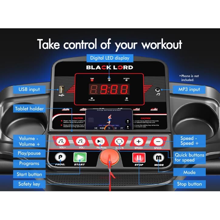 BLACK LORD Treadmill Electric Exercise Running Machine Foldable Home Gym Fitness