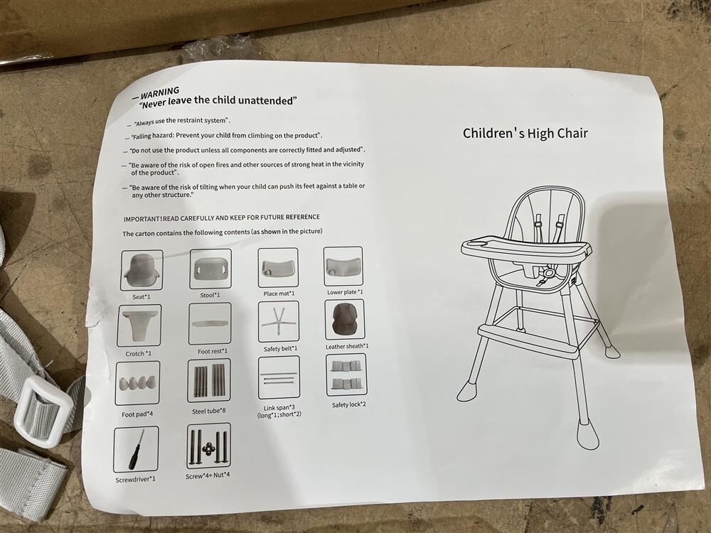 WARNING Warning: In order to avoid the danger of falling, the safety buckle at the junction must be installed before using the baby high chair. Thank you!