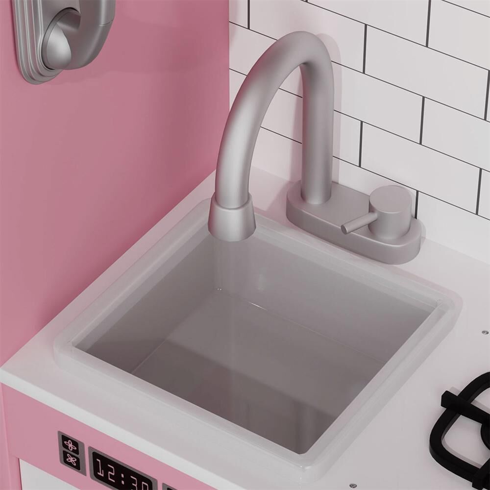 With realistic, lifelike details such as functional doors, turning knobs, and built-in storage compartments, this role play kitchen encourages social interaction, early learning, and problem-solving skills. Your child will enjoy countless hours of fun while they cook, wash dishes, and take pretend phone orders. This educational play kitchen also helps improve their motor skills, creativity, and imaginative play.