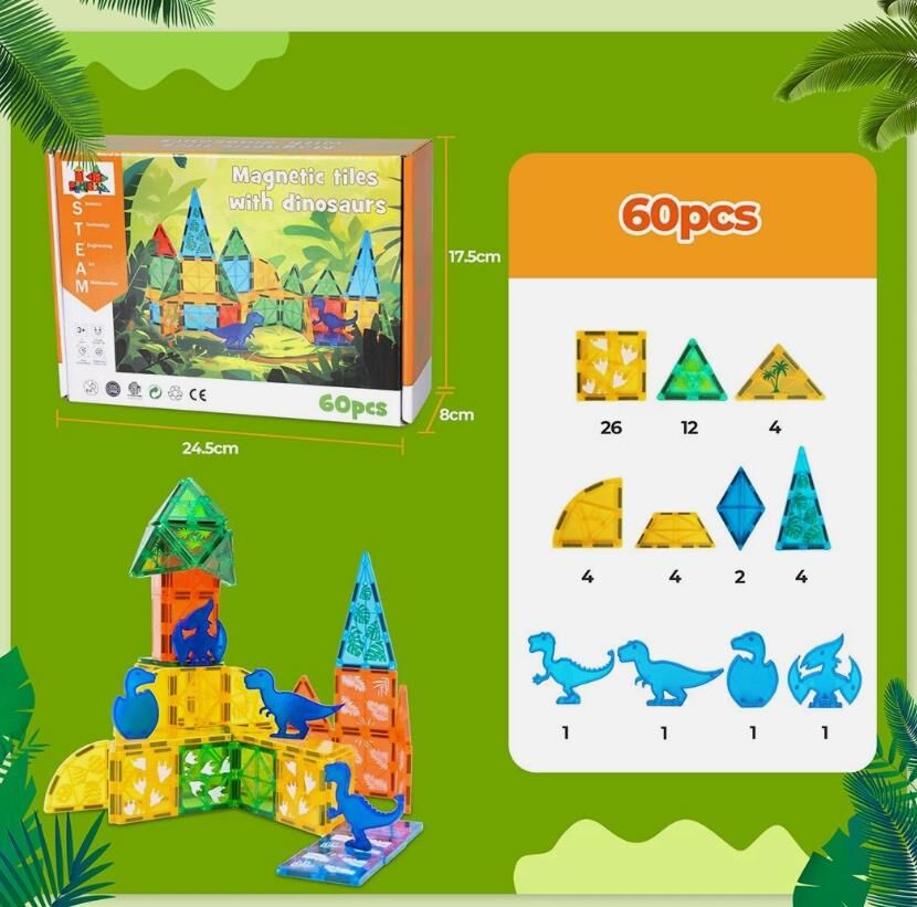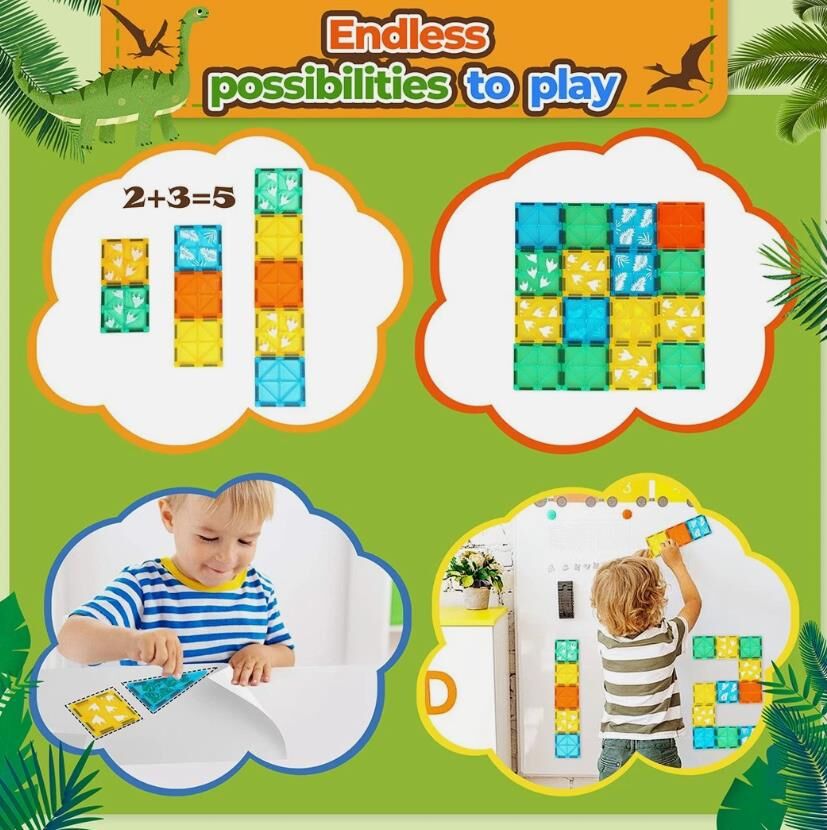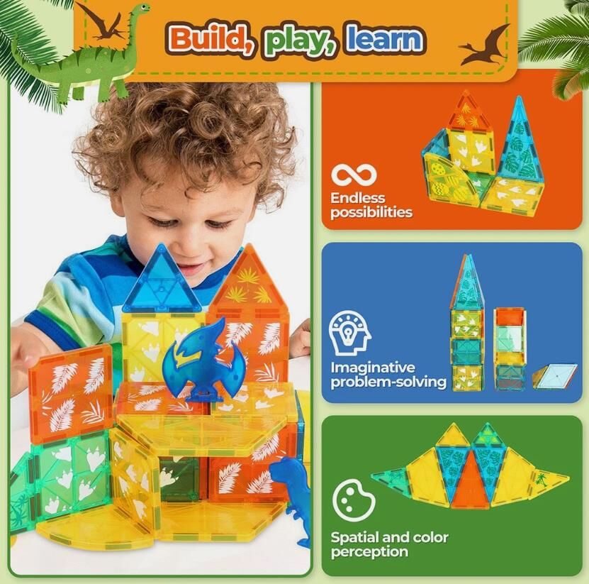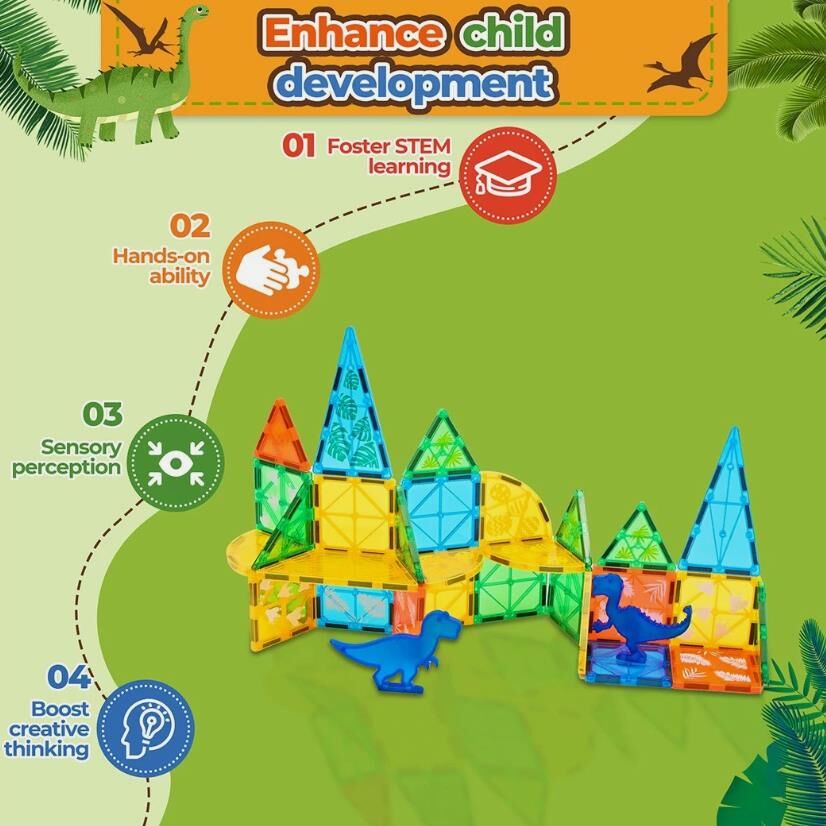 Unleash your kids' creativity with dinosaur-themed magnetic building blocks, allowing them to construct towering volcanoes, vibrant jungles, and amazing dinosaur habitats. The possibilities are endless, enabling them to design their own prehistoric world right at home.