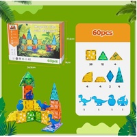 Bopeep Magnetic Tiles Blocks Dinosaur Toys Building Play for Kids STEM 60Pcs