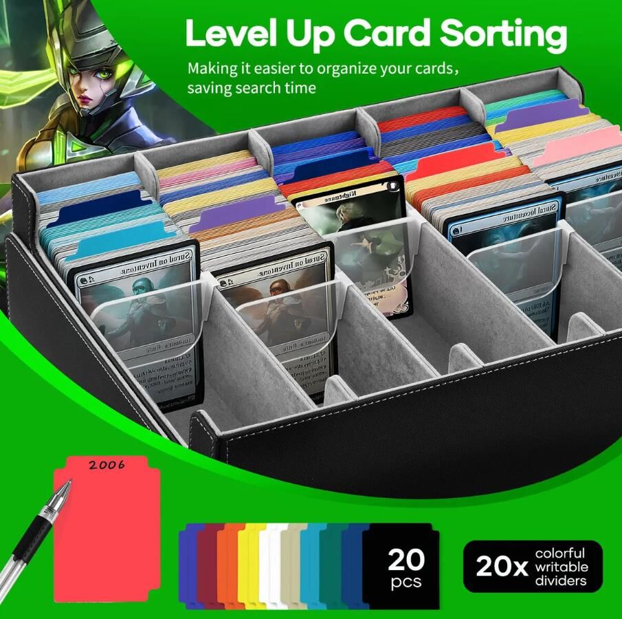 - Organised Storage: Includes 20 removable dividers to separate different card types for easy sorting, plus 5 repositionable row blockers to keep cards securely in place and prevent them from collapsing.