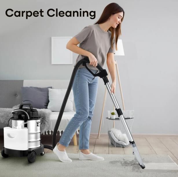 The Carpet Vacuum Cleaner is the best option to tackle pet messes and everyday stains on your carpet. This floor cleaning machine comes with four different brushes, giving you the versatility to clean more than carpets. It can also eliminate spills and debris on rugs, sofas, stairs, floors and fabric items. With its rolling wheels, you can effortlessly move the cleaner around, saving you time and energy. Moreover, our smart mop also has separate tanks for dirty water, clean water, and detergent for maximum convenience. Besides, the robust stainless steel tank ensures excellent sturdiness, hard-wearing durability and great resistance to rust and corrosion. This professional carpet cleaner can effectively remove dirt, allergens, and bacteria and maintain a healthier living environment.