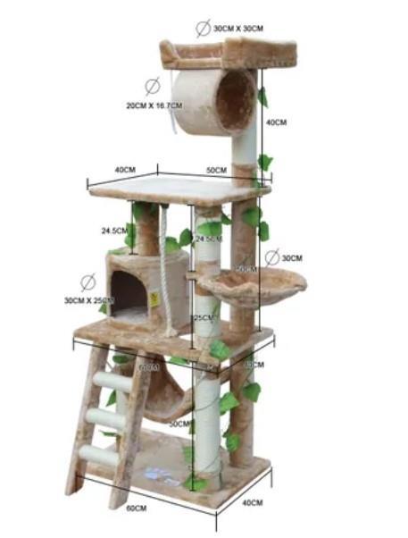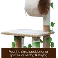Your favourite feline friend will love this 155cm Cat Gym Scratching Post Tree Medium Beige! Ideal for growing kittens to perfect their agility and sharpen their claws or for pampered indoor cats to get the exercise they need; your furniture will be safe from bored or angry cats. The sturdy construction and plush sisal materials provide comfort for cats whether they choose to play or relax. Featuring 1 house for hiding, 1 tunnel, 1 hammock, 1 condo, support poles which double as scratching posts and 4 perching stands for your cat to relax or keep watch of the environment, this cat gym will keep your cat or cats in perfect shape and entertained for hours on end.