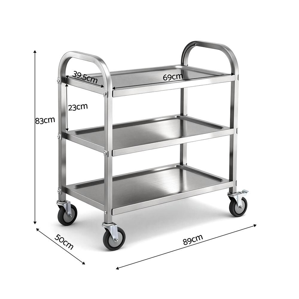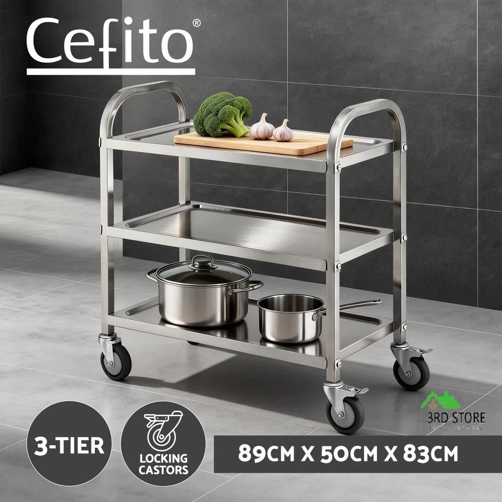 Cefito 3-Tier Stainless Steel Kitchen Trolley with Wheels 89X50X83cm