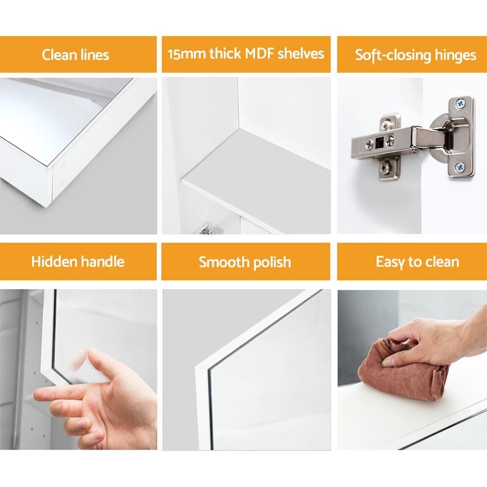 Cefito Bathroom Mirror Cabinet Vanity Medicine White Shaving Storage 900mmx720mm