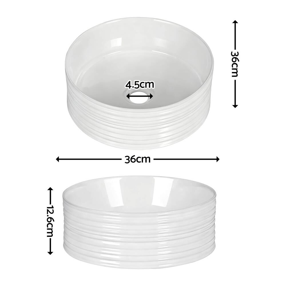 Add a touch of tactile elegance to your bathroom with the Cefito Ribbed Ceramic Basin. Distinguished by its artistic ribbed exterior and high-gloss white finish, this vessel sink creates a stunning visual focal point. Crafted from durable, crack-resistant ceramic, it combines modern minimalist style with long-lasting quality.