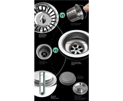 A heavy duty 304 standard stainless steel waste strainer is included with the sink.