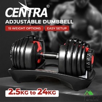 Centra 24kg Adjustable Dumbbell Single Weight Plates Home Gym Fitness Exercise