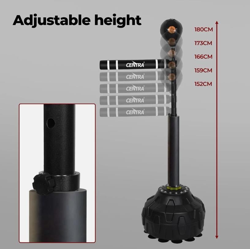 Train like a pro at home with the Centra Boxing Bag – a freestanding reflex system featuring a spinning arm and speed ball for dynamic training. This freestanding boxing bag is height adjustable (152–180cm) and built for all levels, making it perfect for boxing, cardio, and reflex workouts.