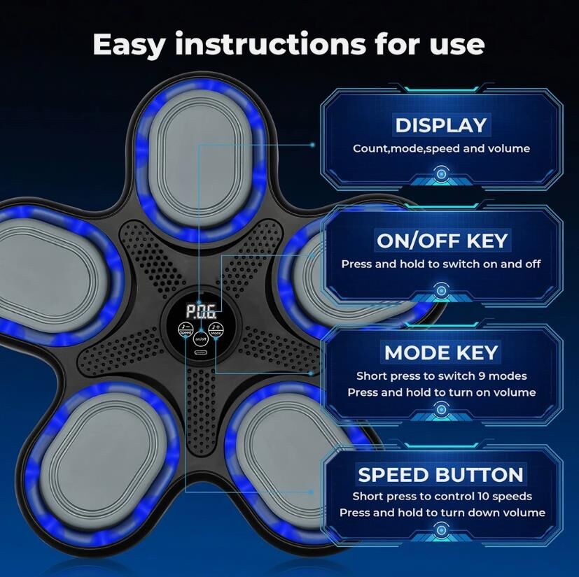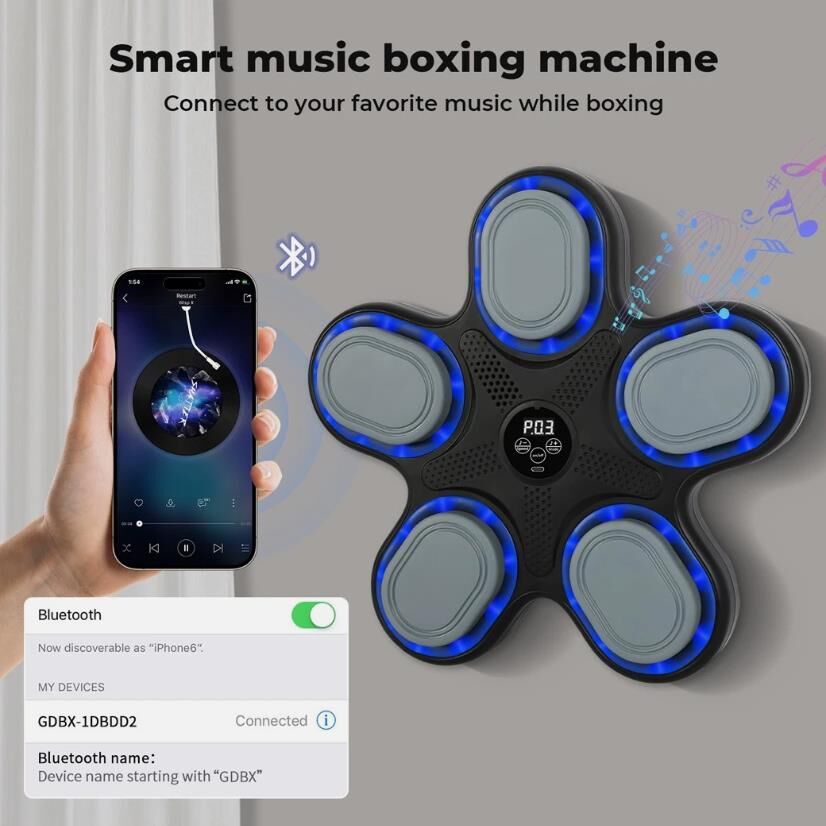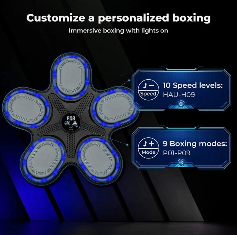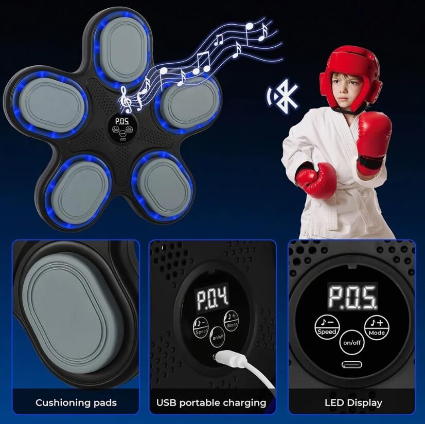 Keep your kids active and entertained with the music boxing machine! Featuring 10 adjustable speeds and 9 interactive modes, it allows children to fine-tune their workout intensity and enjoy dynamic light effects that create a fun and engaging experience. With Bluetooth connectivity, kids can play their favourite music while exercising. The intelligent display tracks every punch, helping them stay motivated and monitor their progress. The high-capacity battery ensures extended playtime for endless enjoyment. Easy to install with a hook-and-loop fastener system, the boxing machine requires no drilling and can be adjusted to suit kids of all ages. Perfect for use in the living room or bedroom, it helps relieve stress, build muscle, and encourage healthy habits—all from the comfort of home. A thoughtful gift for children, this boxing machine combines fitness and fun, making it an excellent addition to any family home!