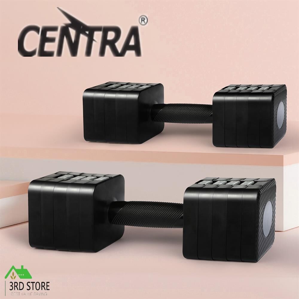 Centra Pair Adjustable Dumbbells 2.8KG-10KG Gym Training Metal Weight Block Set