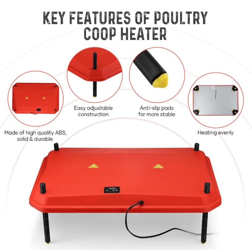 - For poultry lovers, the Chicken Brooder Heating Plate is a great gift or necessary warmer. Made of high-quality ABS, it is easy to assemble, durable, and stable.