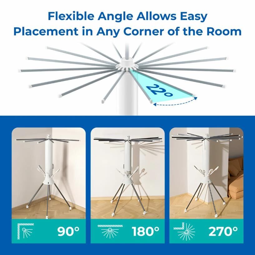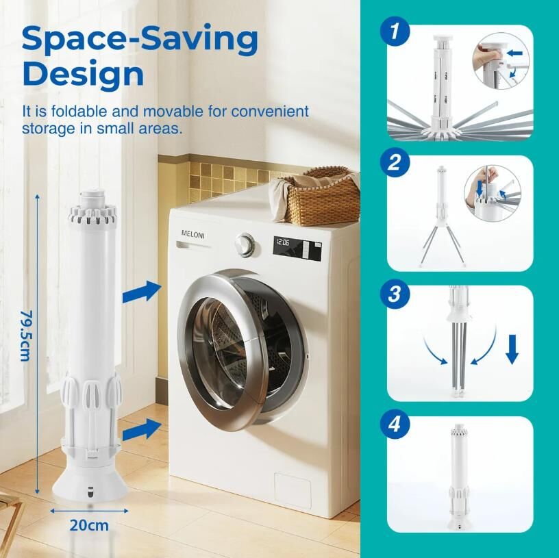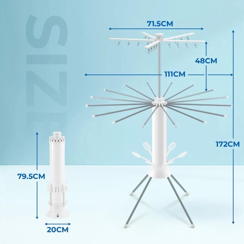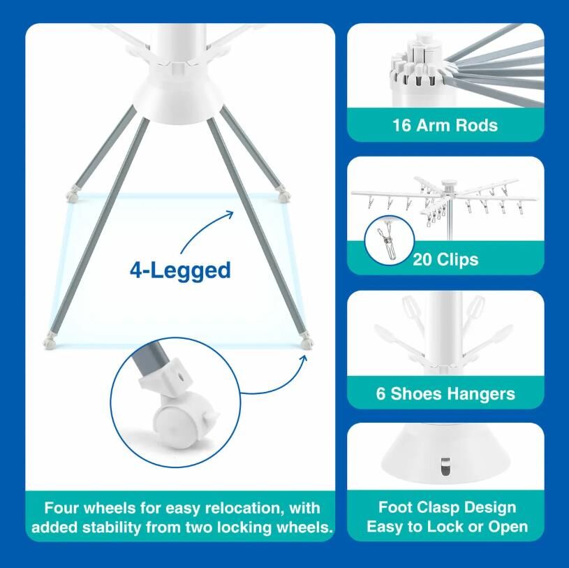 - Smart, Compact Design: Octopus-style structure includes 16 rods and 20 clips, enhancing drying space while folding compactly when not in use.