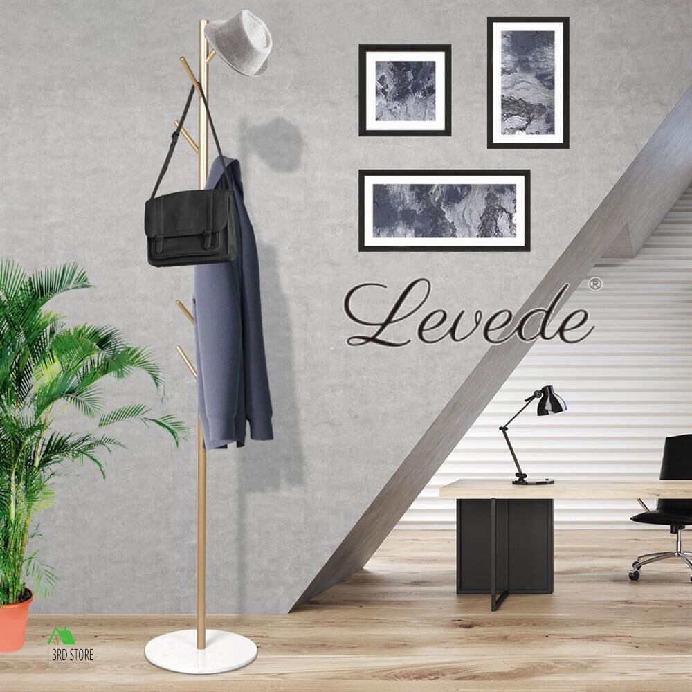 Levede Coat Rack Hat Clothes Stand Hanger Garment Hook Tree Metal Organizer Gold