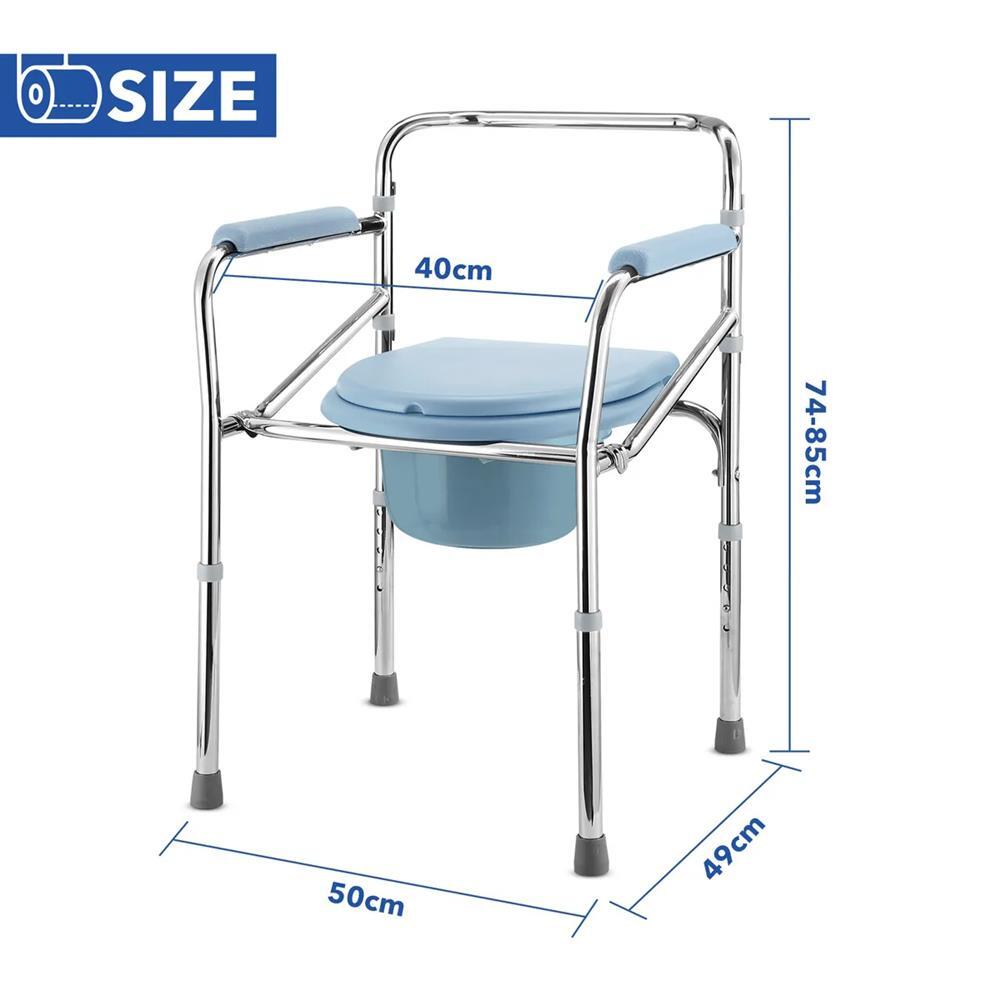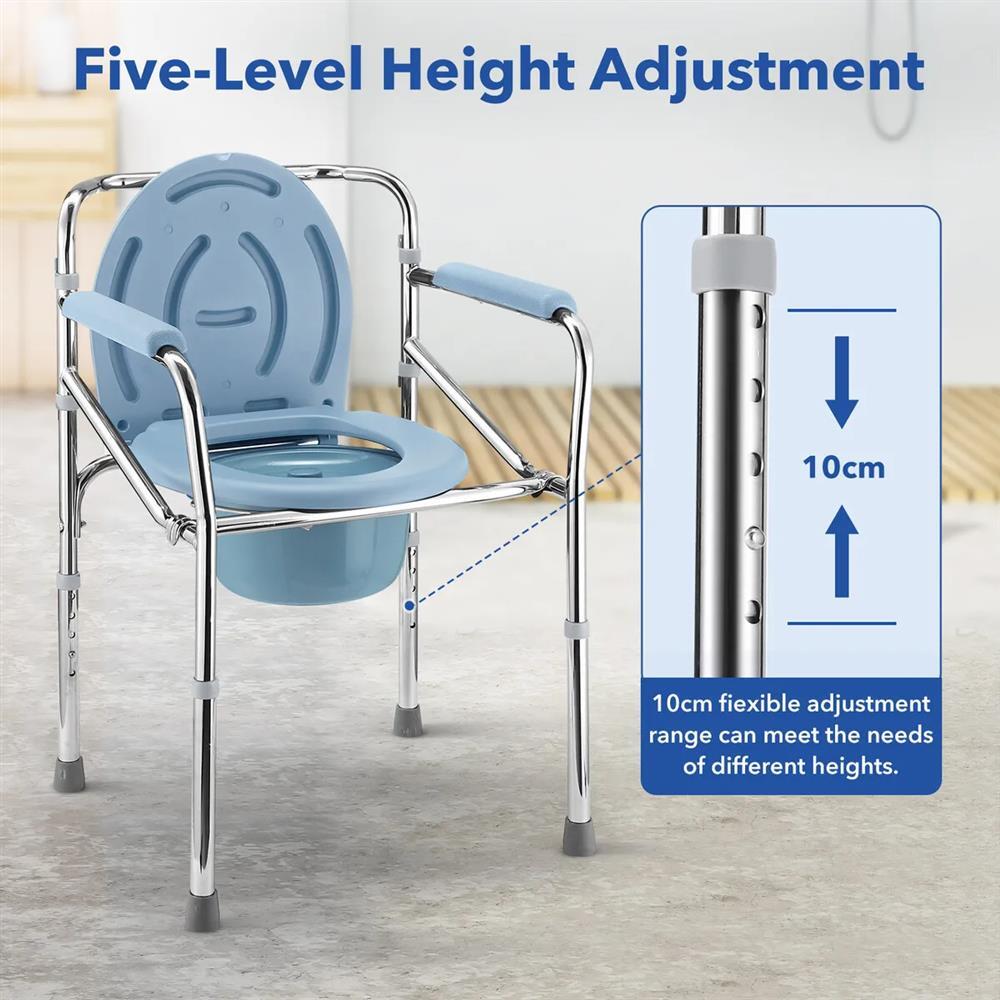 Made from high-quality aluminium alloy, this bathroom commode shower chair is lightweight yet sturdy enough to support a maximum capacity of 150kg. Plus, the PE seat cover is waterproof for easy cleanup and better health. Besides, its five-level height adjustable design caters to the needs of different users, providing personalised comfort and support. In addition, the armrests facilitate easier transitions in and out of the chair while the foot pads keep the chair stable on any surface and give users peace of mind during each use. Better still, the removable commode not only solves the problem of defecation for users with limited mobility but also offers them dignity and confidence. Built for the elderly, pregnant women and individuals with disabilities, it serves as a shower chair, a commode and a comfortable bedside toilet seat.