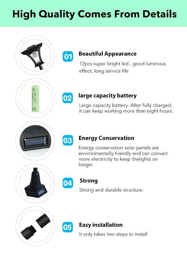 | Features | Solar Sensor;Convenient On/Off Switch |