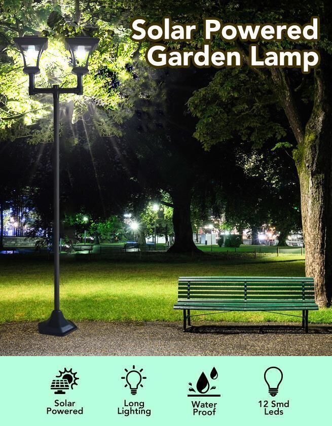 Elegant light posts installed outdoors can give your garden or backyard a fantastic look at nights. When darkness falls, turn this beautiful lamp post on, your lovely lawn, trees, swings and other decors in the garden will bathe in the flood of the bright light and show a different style of scene. The super bright light given off from the long-life LEDs is powered by solar power. The high-efficiency solar panel made of polycrystalline makes this light post an economical and environmentally friendly choice, saving your wallet for electricity bills. Better still, with fully-charged solar power that can last the light up to 8 hours, the lamp automatically turns on when the night is unveiled. Constructed with waterproof materials and UV coated power coating, the lamp post is sure to stand in your garden for years to come.