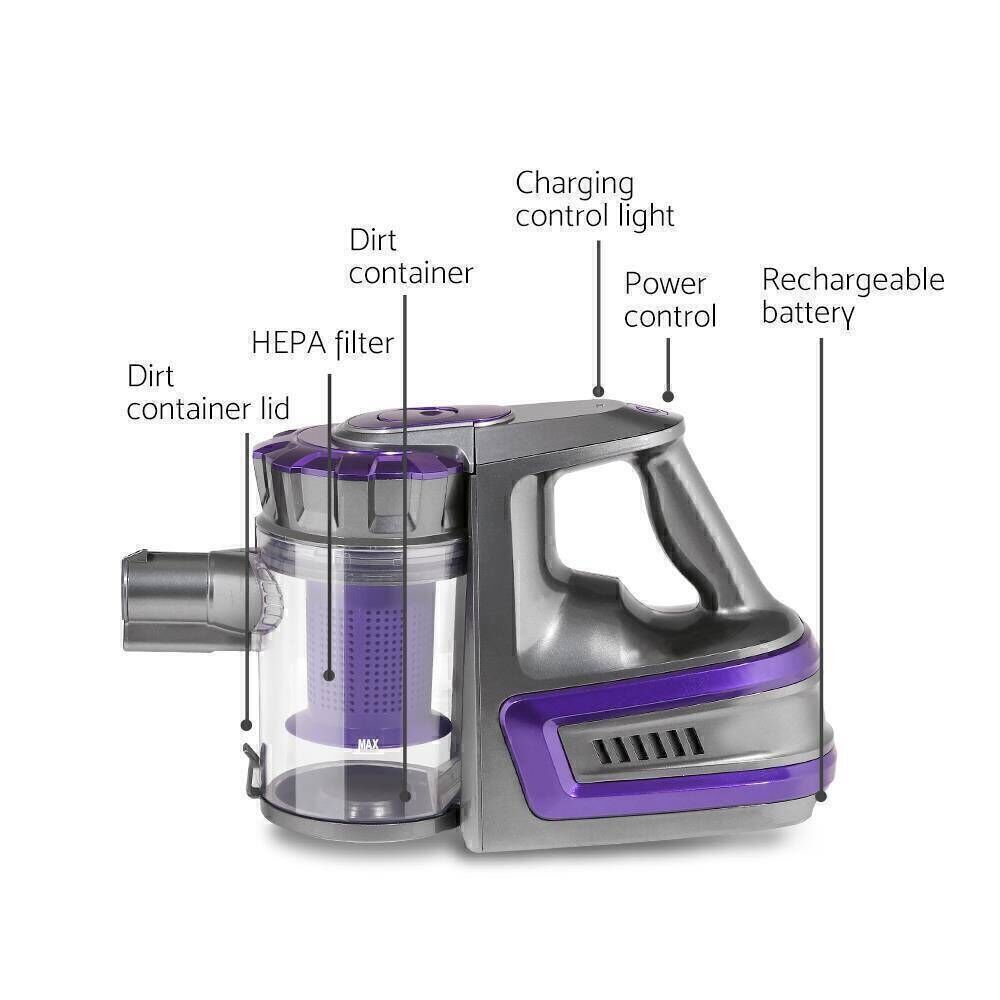 Devanti 150W Stick Handstick Handheld Cordless Vacuum Cleaner 2-Speed with Headlight Purple