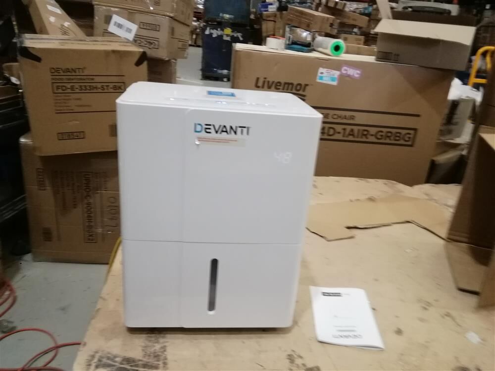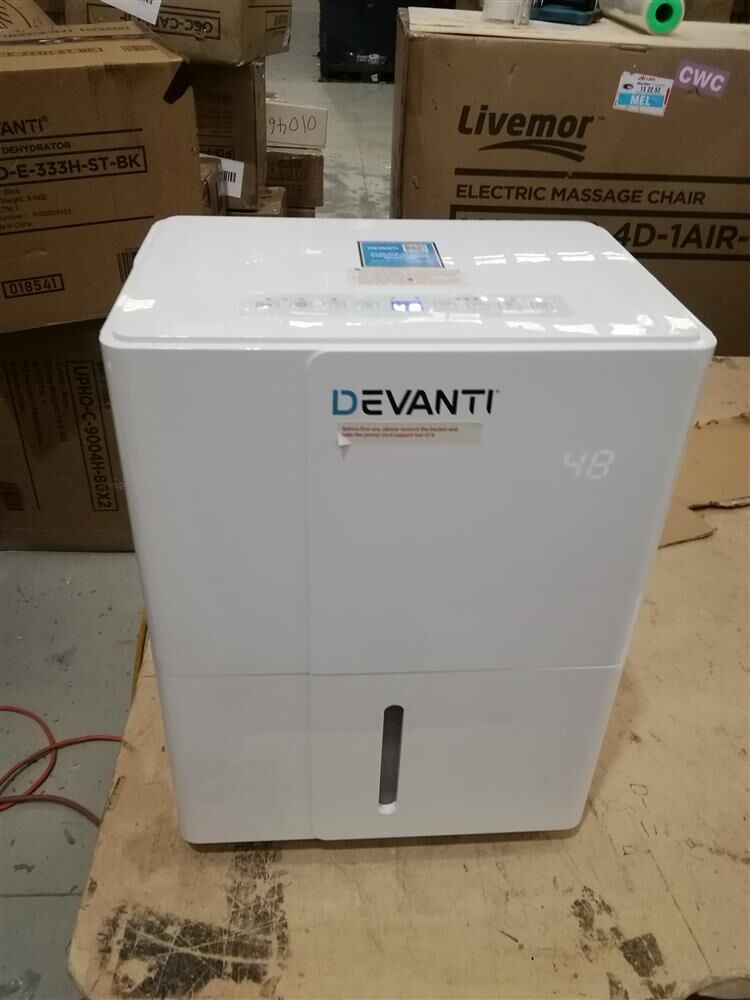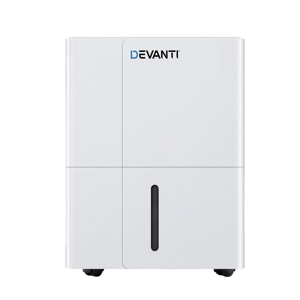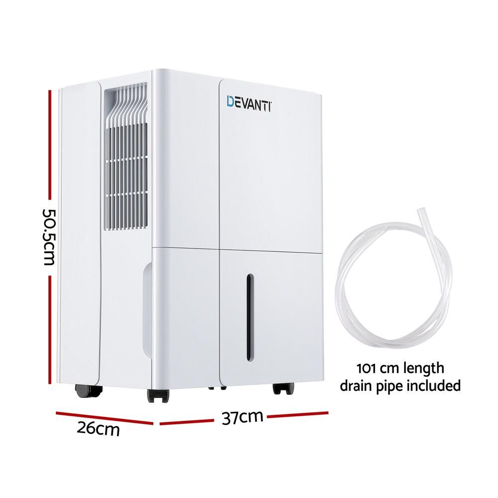 Devanti 30L Dehumidifier & Air Dryer Create a healthy home with this 30L/day moisture absorber. Perfect for medium-large rooms, it features 4 modes including 'Strong' for fast laundry drying and 'Ventilation' for airflow. The stylish hidden front display monitors humidity in real-time. Equipped with a 4.7L water tank and a 101cm hose for continuous drainage. Enjoy whisper-quiet Sleep Mode (≤47dB), 24h timer, and power failure memory. Portable on easy-roll casters, this R290 eco-friendly unit is your solution to mould and damp.