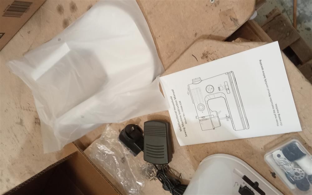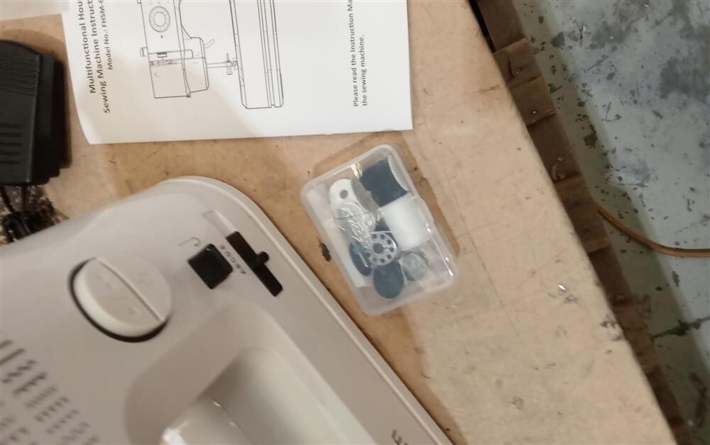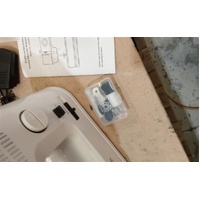 Specifications: Material: ABS, POM, steel board Color: White with black Size: (L)30.2cm X (W) 11.8cm X (H)24.6cm Stitch Formation: Chain Stitch Feed Mechanism: Walking Foot Max. Sewing Thickness: 5mm Stitch Length: 2mm Powered by 6V 1500mA DC adaptor (included) Power: 9W