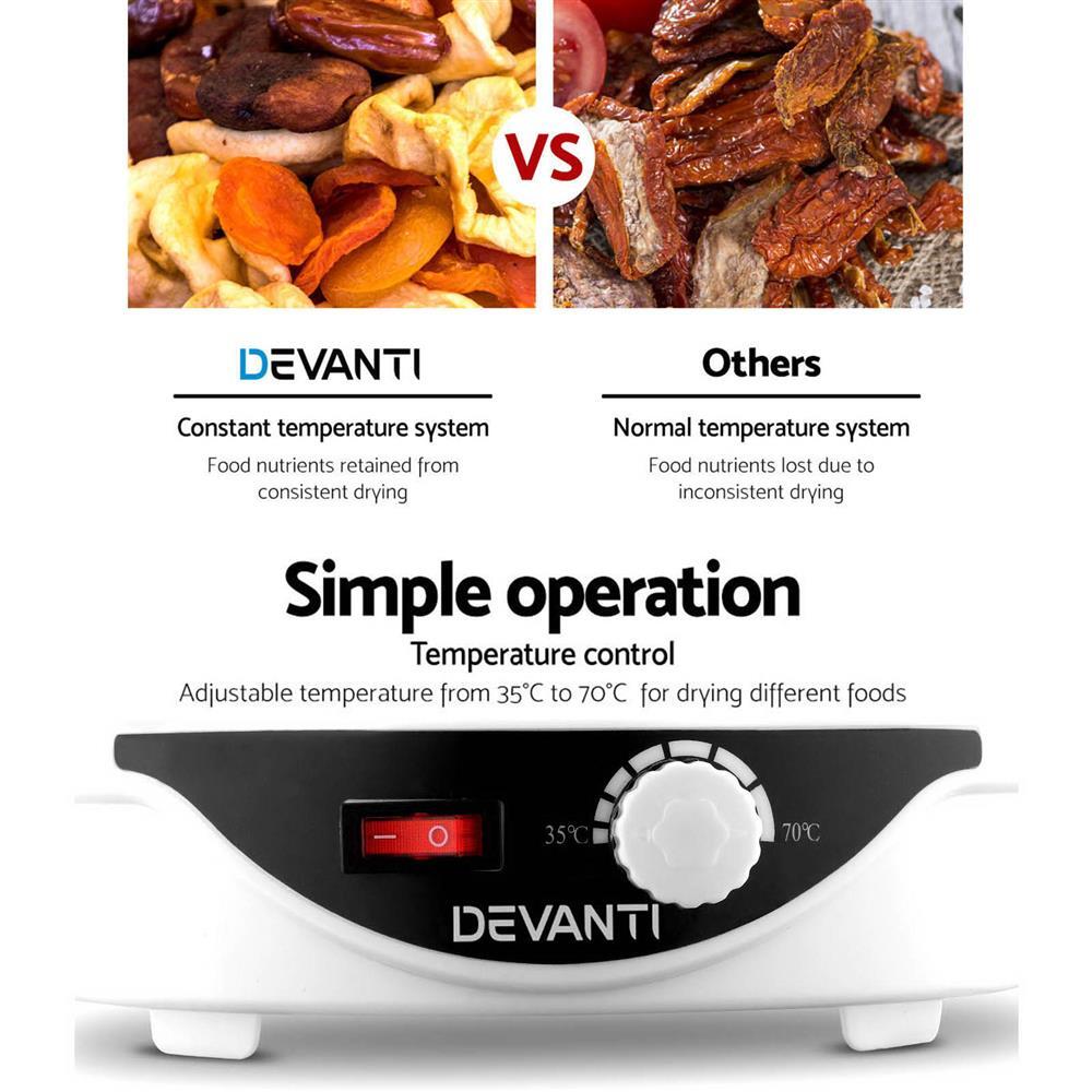 Devanti 5 Trays Food Dehydrator Fruit Dehydrators Pet Beef Jerky Dryer White