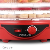 Devanti 5 Trays Food Dehydrators Beef Jerky Dehydrator Fruit Maker Preserver RD