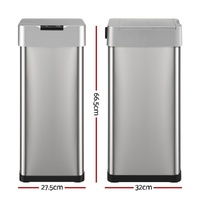 Devanti 50L Motion Sensor Bin Rubbish Bins Kitchen Automatic Trash Can Silver