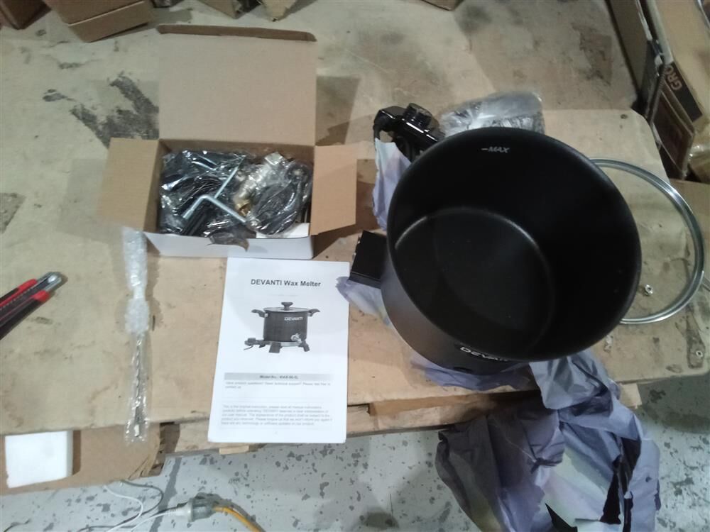 Introducing our Devanti wax melter, ensuring safety and convenience with thermal safety shutoff and boil-dry protection. Easily control temperature for perfect melting every time. Includes essential accessories: mixing spoon, wick holder, wax core, and candle wick stickers. Craft your candles effortlessly and safely.