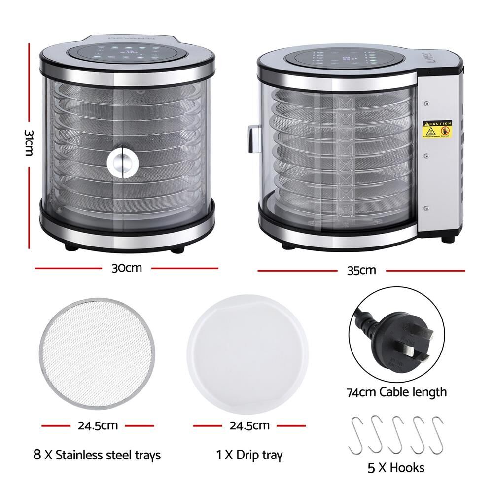 Devanti 8 Trays Food Dehydrator Stainless Steel Auto-Rotate 10 Programs 700W