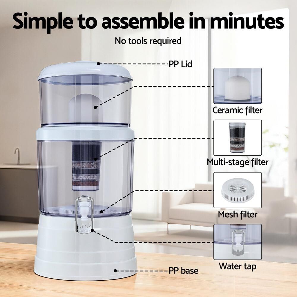 Made from BPA-free, food-grade materials, it's safe, sustainable, and far more cost-effective than bottled water. Easy to assemble and simple to maintain, Devanti delivers reliable, refreshing water for family gatherings, staff rooms, camping trips, or emergencies — giving you peace of mind with every sip, wherever life takes you.