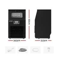 Don't let your guests or customers go without cool drinks. With the Devanti Commercial Ice Maker, you'll be able to keep the drinks flowing. The ice maker can produce three different thicknesses of its crystalline square-shaped cubes to suit your guest's needs, and the machine is capable of making 32 cubes every ice-making cycle, and up to 30kg of ice every 24 hours. You can easily monitor the ice-making process through the transparent inspection window, and automatic sensors will let you know when the water level is low or the ice tray is full. You can even set a timer for up to 24 hours of hands-free ice-making complete with an auto-shutdown. It has an auto-cleaning function that cleans the ice tray and water tank so you can create clean, fresh cubes every time. The machine is easy to install simply plug in the power cable and the included water intake and drainage hoses. The machine operates perfectly quietly and is suitable for both home and commercial operations. Keep it cool and enjoy fresh, crisp ice any time with the Devanti Commercial Ice Maker.