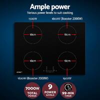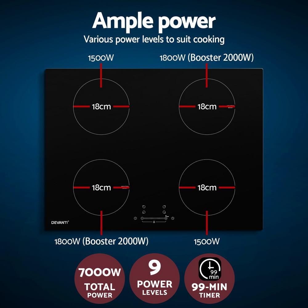 Devanti Electric Induction Cooktop 70cm Ceramic 4 Zones Stove Cook Top Hot Plate 7000W