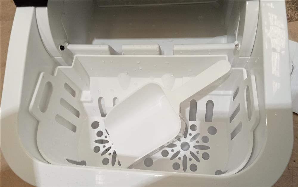Ice scoop and removable basket included