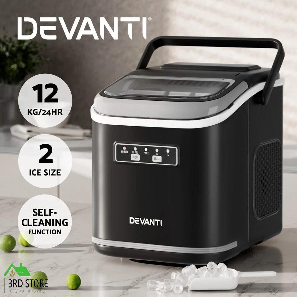 Devanti Ice Maker Machine Portable 12kg Countertop w/Self Cleaning 1.3L Black