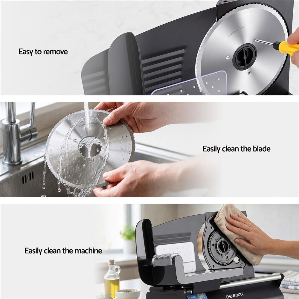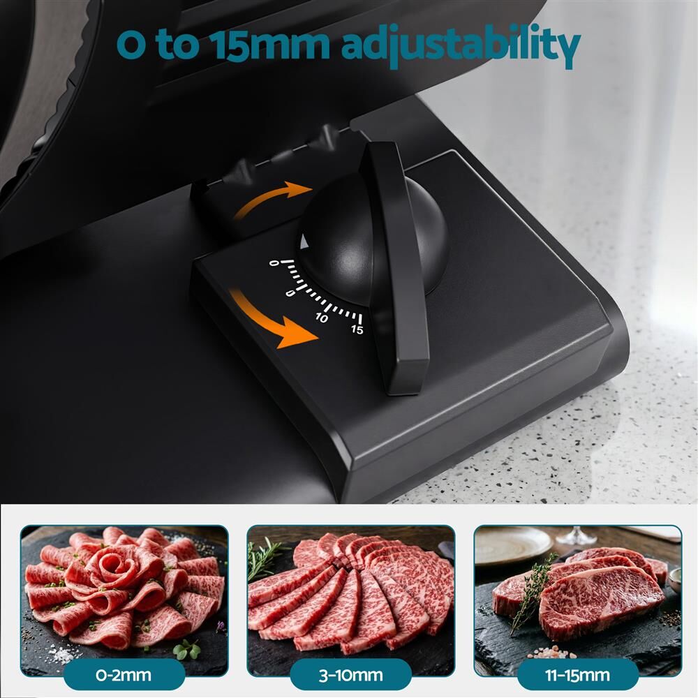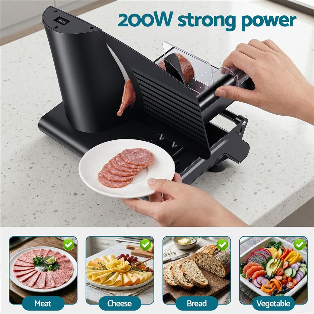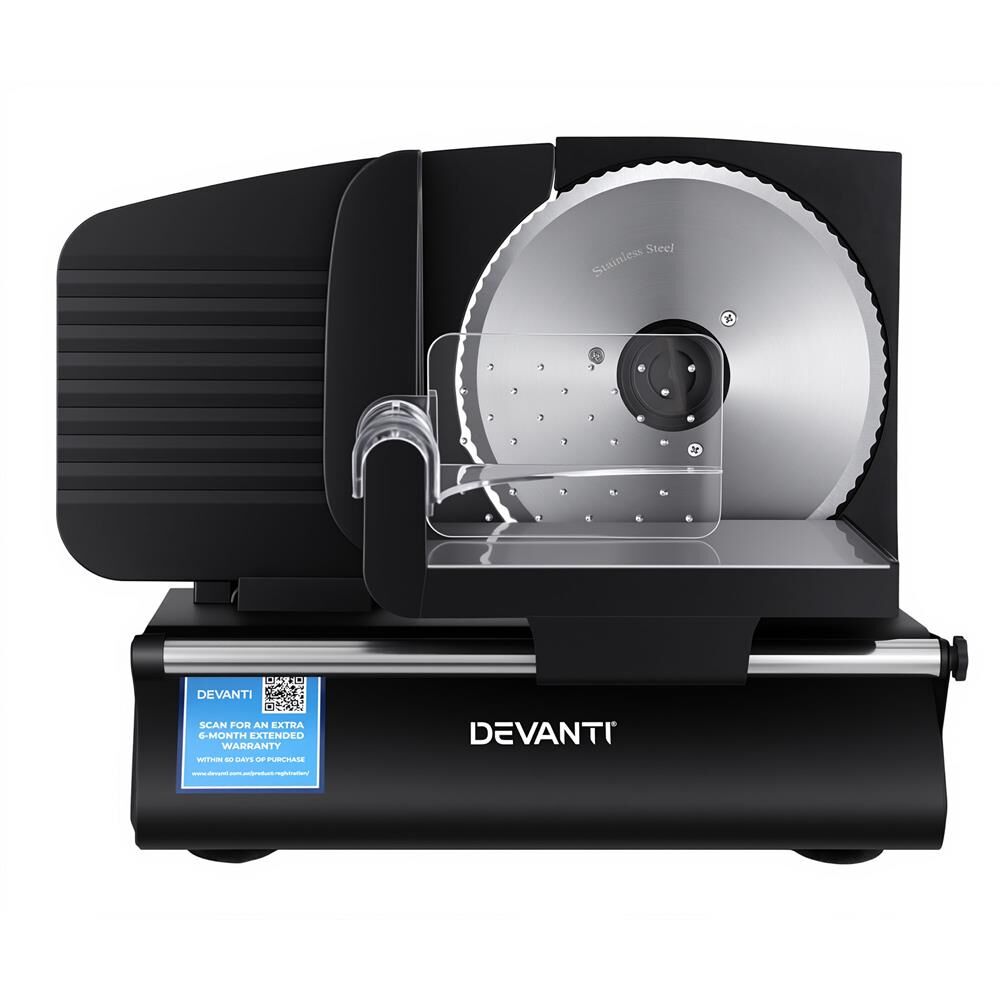 Devanti Meat Slicer Bread Vegetable, 200W Power 0-15mm Adjustable Easy Clean Stable Stainless Steel Blade Food Slicer for Kitchen Commercial, Black