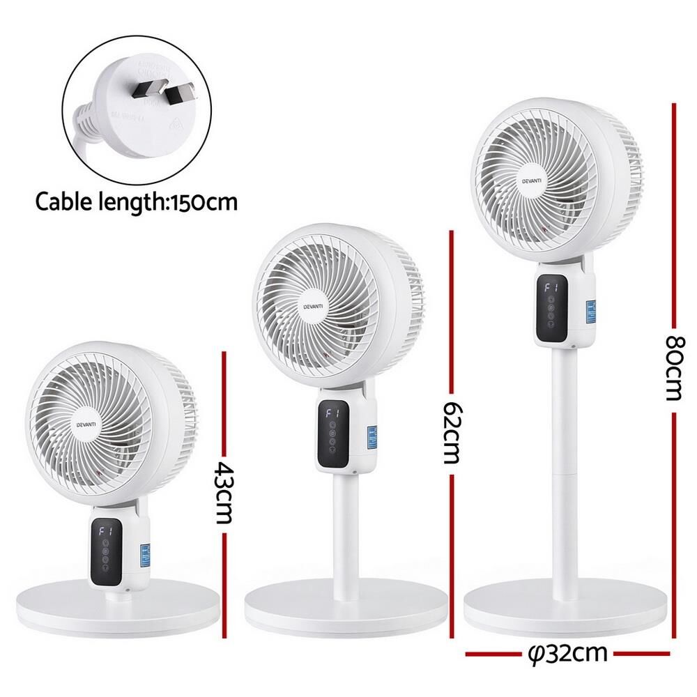 Stay cool and comfortable all year round with this Devanti pedestal fan with remote. Designed with height adjustment from 43cm to 80cm, it can be used as a compact mini fan for desktops or as a full-size pedestal fan for cooling larger areas. The 3D air circulation, combined with 45° vertical tilt and 90° horizontal swing, delivers wide coverage to every corner of the room.