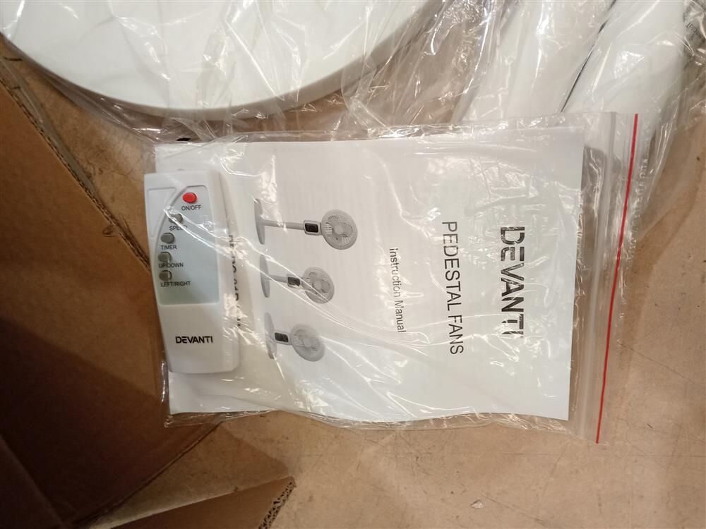Devanti Pedestal Fan W/ Remote 3 Speed 12H Timer Height Adjustable Cooling Fan