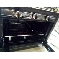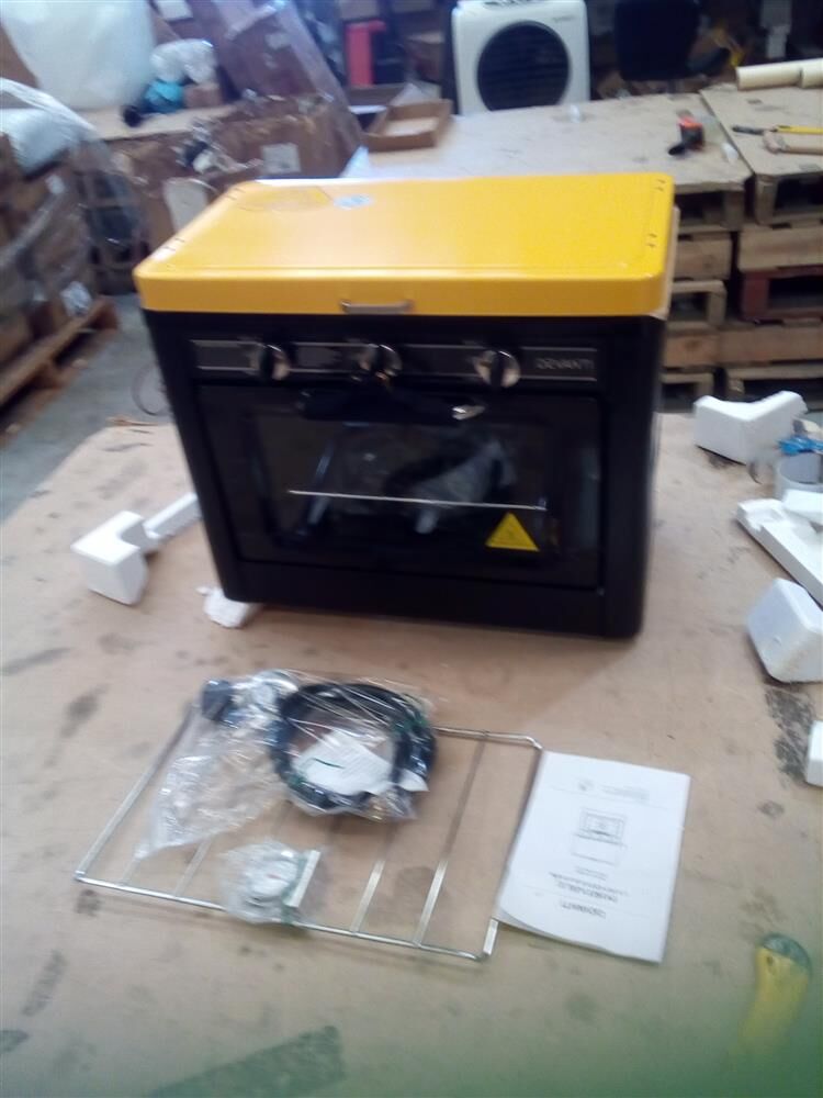 Specifications: Brand: Devanti Approval: AGA Burners: Matchless lighting Housing material: Stainless steel Burner coating: Non-stick enamel Ignition: Easy start Piezo Top burners: 5300BTU each Oven: 3500BTU Temperature range (No load condition): 0 - 300 (or above) degrees Overall dimension: 53.5 x 34 x 46cm Oven weight: 16.5kg Colour: Black and Yellow