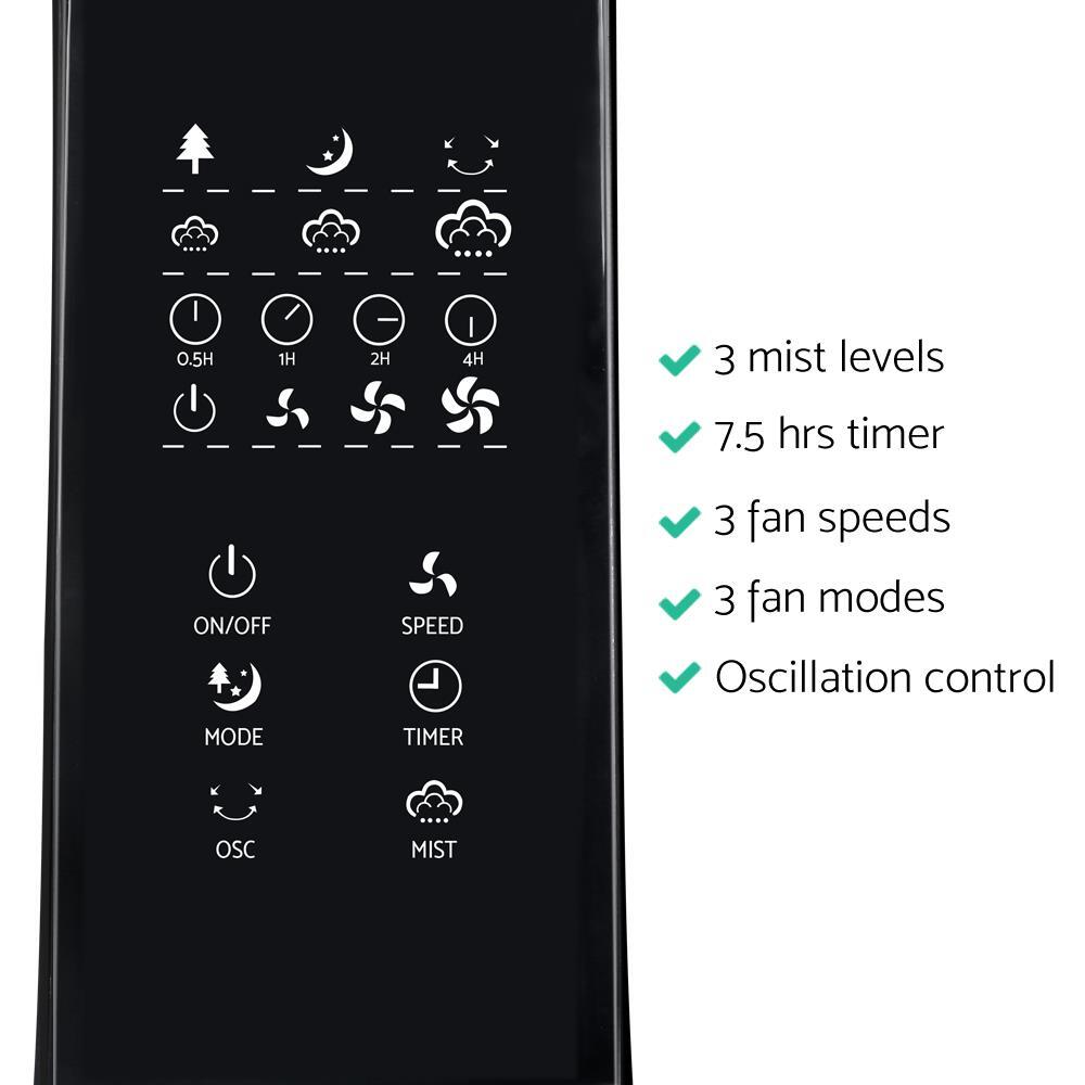 With an 85°oscillation and 15°fan head tilt adjustment, the Devanti Mist Fan ensures wide coverage near and far, up and down the room while its wheeled base allows the fan to be used anywhere. Not least, a handy remote control also allows you to get the soothing breezes going from as far as five metres away.