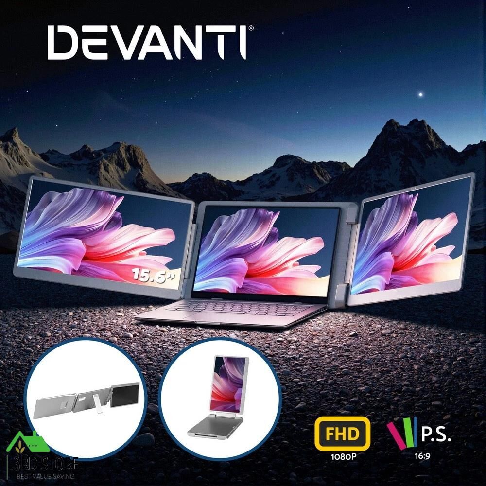 Devanti Triple Portable Monitor Laptop Screen Extender 15.6" Dual Display FHD IPS