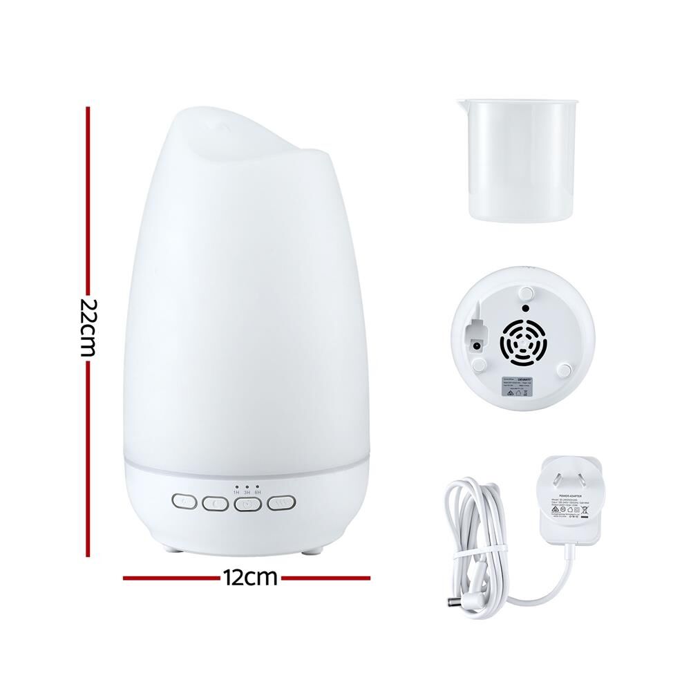 Create a calming atmosphere with the Devanti 300ml Ultrasonic Essential Oil Diffuser. Featuring an elegant tulip design, this cool mist humidifier offers 14 soothing LED light colors and dedicated night modes to perfectly match your mood. With a generous 300ml capacity, whisper-quiet operation, and 1H/3H/6H timer settings, it ensures uninterrupted relaxation. The waterless auto-off function guarantees safety. Perfect for your bedroom, yoga studio, or office. Elevate your wellbeing today!
