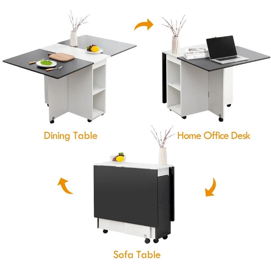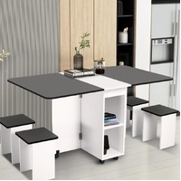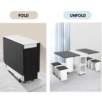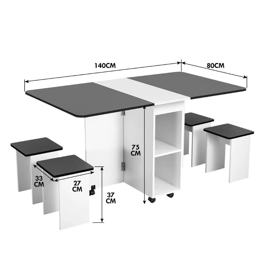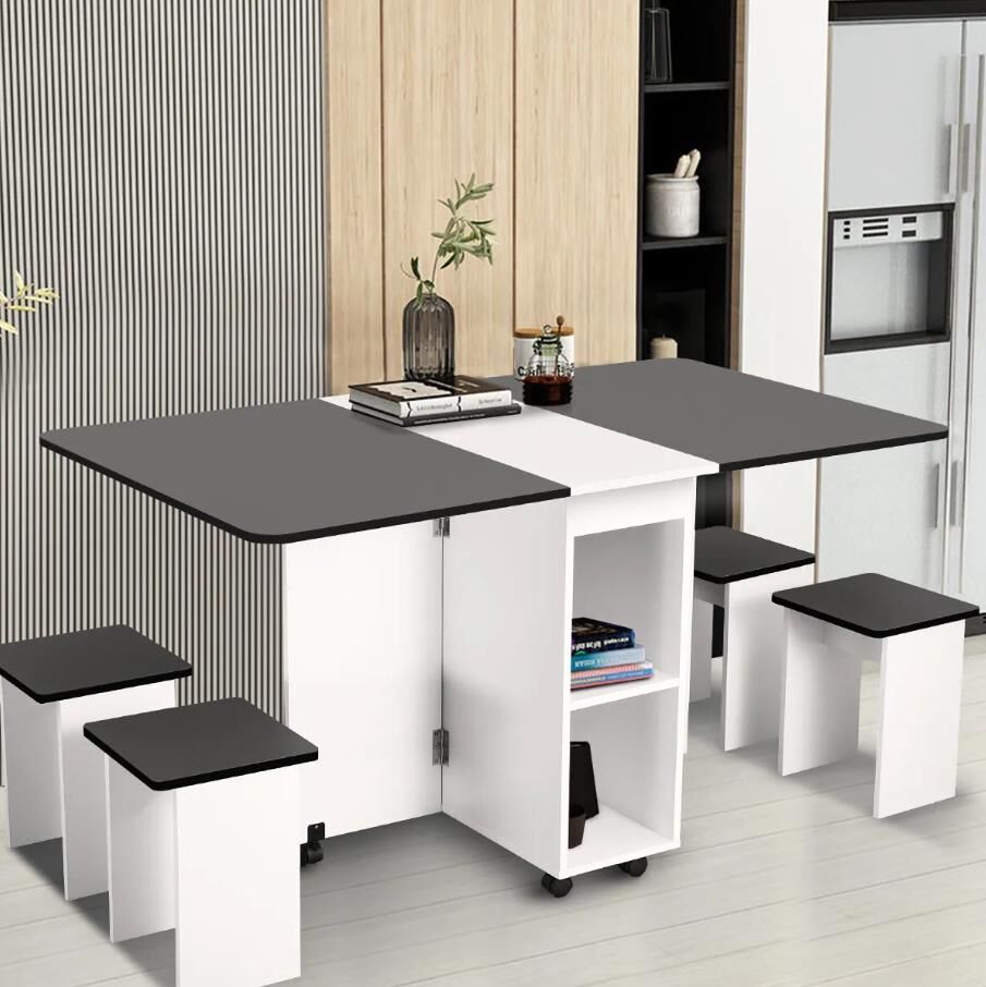 Dining Table and Chair 5 Piece Multifunctional Foldable Furniture White & Black